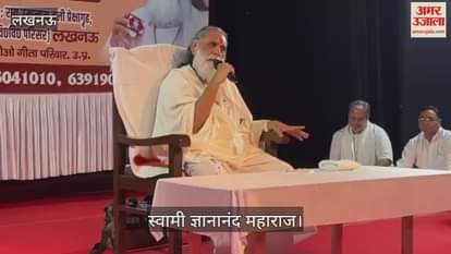 VIDEO: राय उमानाथ बली प्रेक्षागृह में आयोजित गीता परिचर्चा में जानकारी देते स्वामी ज्ञानानंद महाराज