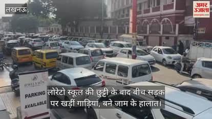 Video : स्कूल की छुट्टी के बाद बीच सड़क पर खड़ीं गाड़ियां, बने जाम के हालात
