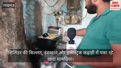 गैस सिलिंडर की किल्लत की वजह से डालीबाग स्थित दुकानदार ने इलेक्ट्रिक कढ़ाही और इंडक्शन का इस्तेमाल शुरू किया। इंडक्शन और इलेक्ट्रिक कढ़ाही में खाद्य सामग्रियां पका रहे।