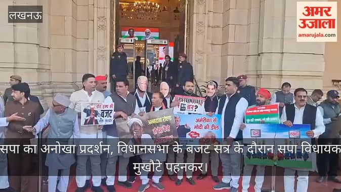 Video: सपा का अनोखा प्रदर्शन, विधानसभा के बजट सत्र के दौरान सपा विधायक मुखौटे पहनकर