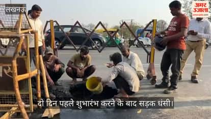 VIDEO: दो दिन पहले रक्षामंत्री राजनाथ सिंह ने किया था शुभारंभ, सड़क धंसी