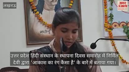 Video : उत्तर प्रदेश हिंदी संस्थान के स्थापना दिवस समारोह में निर्मिल देवी द्वारा 'आकाश का रंग कैसा है' के बारे में बताया गया