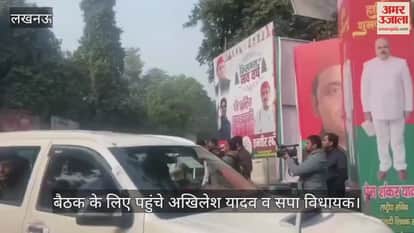 VIDEO: यूपी विधानमंडल सत्र के पहले सपा अध्यक्ष अखिलेश यादव की विधायकों के साथ बैठक