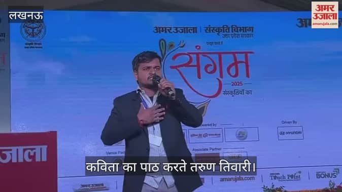 लखनऊ के गोमती रिवर फ्रंट स्थित फूड वैली में अमर उजाला एवं संस्कृति विभाग उत्तर प्रदेश के संयुक्त तत्वावधान में भारत रत्न अटल बिहारी वाजपेयी की जयंती के शताब्दी समारोह के समापन के उपलक्ष्य में आयोजित संगम 2025 संस्कृतियों का आयोजन कार्यक्रम के दूसरे दिन कविता का पाठ करते तरुण तिवारी।