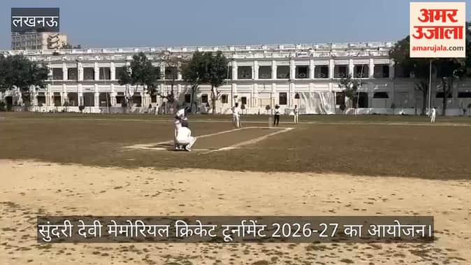 चारबाग स्थित श्री जय नारायण मिश्रा पीजी कॉलेज ग्राउंड में आयोजित 53 सुंदरी देवी मेमोरियल क्रिकेट टूर्नामेंट 2026-27 में खेलते डीएवी कॉलेज (बैटिंग) और जेएनपीजी (बॉलिंग) के खिलाड़ी।