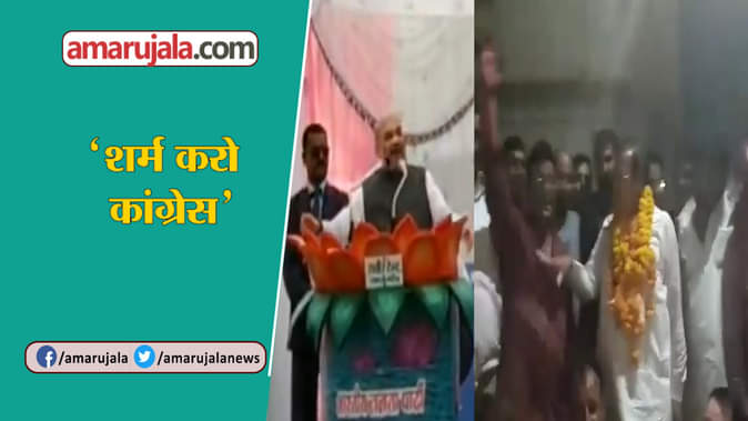 बीजेपी अध्यक्ष अमित शाह ने कांग्रेस के एक वायरल वीडियो को लेकर पार्टी पर निशाना साधा है। वीडियो में कांग्रेस बीकानेर के दिग्गज नेता बीडी कल्ला अपने एक समर्थक को भारत माता की जय का नारा लगाने से रोकते दिखाई दे रहे हैं। जिसके बाद समझाने पर वो सोनिया गांधी, राहुल गांधी की जय के नारे लगाने लगता है। आइए दिखाते हैं पहले कांग्रेस का वो वायरल वीडियो और फिर उस पर अमित शाह का तंज।