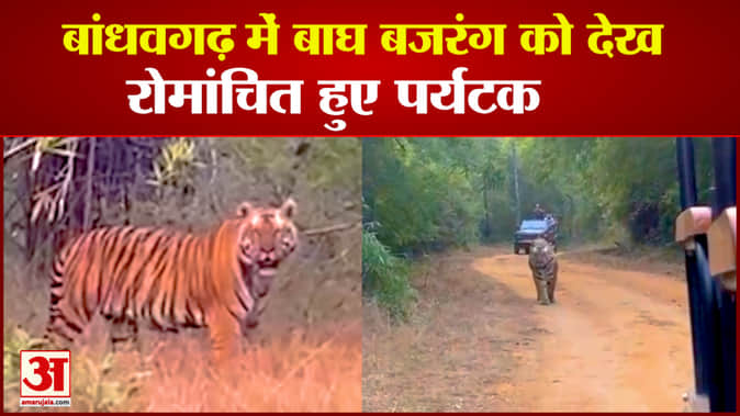 मध्यप्रदेश के उमरिया जिले में स्थित बांधवगढ़ टाइगर रिजर्व बाघों के लिए देशभर में प्रसिद्ध है। अक्सर यहां से बाघों के मंत्रमुग्ध करने वाले वीडियो वायरल होते रहते हैं। हाल ही सफारी पर गए पर्यटकों को बाघ बजरंग नजर आया, जिसका रोमांचित करने वाला वीडियो सोशल मीडिया पर वायरल हो रहा है। वायरल वीडियो में बाघ पर्यटकों की जिप्सी के बीच से गुजरता नजर आ रहा है, जिसे देखकर पर्यटक उत्साहित हो गए।