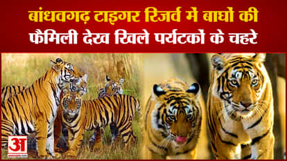 Bandhavgarh Tiger Reserve: बांधवगढ़ में बाघों का परिवार देख खुश हुए सैलानी, रोमांचक वीडियो आया सामने