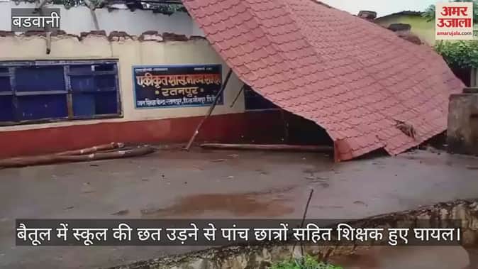 शनिवार को प्रदेश के कई जिलों में दोपहर बाद अचानक तेज बारिश का दौर शुरू हुआ। इस दौरान गरज और चमक के साथ ही तेज हवा आंधी भी देखी गई, जिससे प्रदेश भर में कई जगहों से बड़े नुकसान होने की बात सामने आई है। प्रदेश के बैतूल जिले में बारिश से बड़ा नुकसान हुआ है। यहां के भीमपुर ब्लॉक के रतनपुर गांव की एकीकृत शासकीय माध्यमिक शाला और छात्रावास की छत ही उड़ गई। इस दौरान स्कूल में लगे कई पेड़ भी धराशाई हुए हैं। हादसा उस वक्त हुआ जब स्कूल में बच्चे पढ़ाई कर रहे थे, जिसके चलते इस हादसे में एक शिक्षक और पांच छात्र भी घायल हुए हैं।