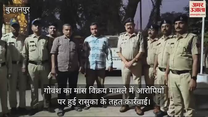 मध्यप्रदेश के बुरहानपुर नगर के गणपति नाका थाना अंतर्गत बड़ी मात्रा में जब्त हुए गौवंश के मांस मामले में फरार आरोपियों को पकड़ लिया गया है। बता दें कि, बीते शुक्रवार को पुलिस ने दबिश देकर कसाई बाड़े से बिक्री के लिए काटे गए दो बैलों का मांस सहित काटने के हथियार भी जब्त किए थे। हालांकि कार्रवाई के दौरान दो आरोपी फरार हो गए थे, जिस पर पुलिस ने पहले 10 और बाद में बढ़ाकर 20 हजार रुपये का इनाम भी घोषित किया था। इसके बाद अब दोनों ही आरोपियों को पुलिस ने बुधवार देर शाम धर दबोचा है। दोनों ही आरोपी गोवंश से जुड़े मामलों के आदतन अपराधी हैं, जिसके चलते अब इन पर पुलिस के द्वारा रासुका जैसी बड़ी कार्रवाई की जा रही है।
