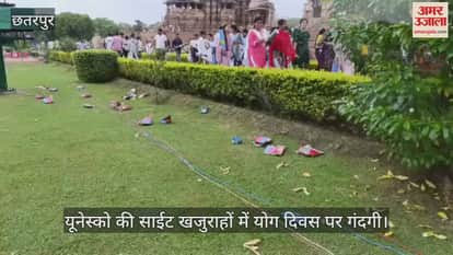 विश्व प्रसिद्ध पर्यटन नगरी खजुराहो में शुक्रवार को अंतरराष्ट्रीय योग दिवस बड़े उत्साह के साथ मनाया गया। बड़ी संख्या में लोग स्मारक परिसर पहुंचे और सामूहिक योगाभ्यास में भाग लिया। लेकिन, इस आयोजन के बाद पुरातत्व विभाग की लापरवाही सामने आई। योग अभ्यास के बाद प्रतिभागियों को नाश्ते और लंच के पैकेट वितरित किए गए। लोगों ने वहीं बैठकर खाना खाया, लेकिन खाली पैकेट, पॉलिथीन, रैपर और अन्य कचरा परिसर के गार्डन में ही फेंक दिया। इससे पूरे विश्व धरोहर स्मारक परिसर में गंदगी फैल गई, जो बेहद दुर्भाग्यपूर्ण है।