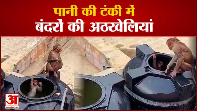 भीषण गर्मी से बेहाल लोग अब बेसब्री से मानसून का इंतजार कर रहे हैं। आम लोगों के साथ ही वन्य जीव और पशु-पक्षी भी गर्मी से बेहाल हो चुके हैं। जहां लोग गर्मी से राहत पाने के लिए कूलर, पंखे और एसी का सहारा ले रहे हैं तो वहीं वन्यजीव अपने तरीके से गर्मी से राहत पा रहे हैं। हाल ही में दो बंदरों का वीडियो सामने आया है, जिसमें वह गर्मी से राहत पाने के लिए पानी की टंकी में उछल-उछलकर नहाते नजर आ रहे हैं।