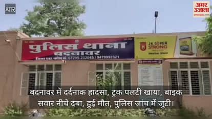 Dhar News: बदनावर के महू-नीमच फोरलेन पर ट्रक पलटा, पास से गुजर रहा बाइक सवार नीचे दबा, फावड़े से समेटा शव