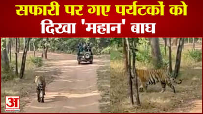 बांधवगढ़ टाइगर रिजर्व से आये दिन बाघों के खूबसूरत वीडियो सामने आते रहते हैं। बाघों के रोमांच को देखने के लिए दूर-दूर से पर्यटक बांधवगढ़ पहुंचते हैं। हाल ही में सफारी पर गए पर्यटकों को महान नामक बाघ का दीदार हुआ, इस नजारे को पर्यटकों ने अपने कैमरे में कैद किया। बाघ का वीडियो सोशल मीडिया पर वायरल हो रहा है। वीडियो में बाघ पहले पर्यटकों की जिप्सी के पीछे चलता दिख रहा है और फिर जंगल में चला जाता है।