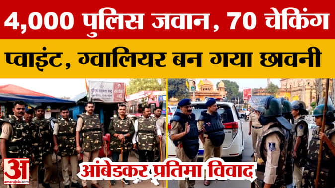 Gwalior News : आंबेडकर प्रतिमा विवाद पर ग्वालियर बना छावनी, चप्पे-चप्पे पर नजर, हजारों जवान तैनात