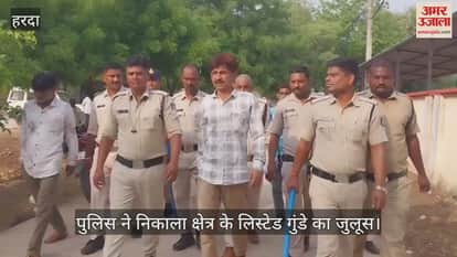 हरदा के कोतवाली थाना क्षेत्र में पुलिस जवानों के साथ धक्का मुक्की करने वाले क्षेत्र के एक लिस्टेड गुंडे का बुधवार को शहर में जुलूस निकाला गया। दरअसल सोमवार-मंगलवार की रात में जिला अस्पताल के सामने एक चाय की दुकान देर रात तक खुली थी। इसे जिला अस्पताल चौकी में पदस्थ आरक्षकों द्वारा बंद करने को कहा गया। इस पर चाय दुकान वाले अज्जू खान द्वारा आरक्षक के साथ ही धक्का मुक्की करते हुए शासकीय कार्य में बाधा डालने का काम किया गया था। इसके बाद आरक्षक लोकेश गौर की शिकायत पर थाना सिटी कोतवाली में बीएनएस की धारा 170 के तहत मामला दर्ज कर जांच में लिया गया। वहीं सिटी कोतवाली थाना प्रभारी प्रहलाद मर्सकोले ने बताया कि थाना क्षेत्र की गुंडा सूची मे शामिल अज्जू खान की चाय की दुकान जब आरक्षक बंद करवाने पहुंचे तो वहां आरक्षक के साथ ही धक्का मुक्की की गई थी। इसके बाद मामला दर्ज कर आज आरोपी को गिरफ्तार कर एसडीएम कोर्ट में पेश किया गया। जहां से उसे जेल भेज दिया गया है।