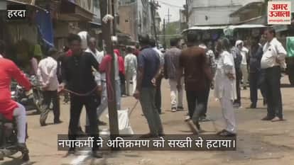 हरदा-हरदा नगर पालिका की परिषद में घंटाघर बाजार में पुरानी सब्जी मंडी में दुकानों को हटाने का प्रस्ताव पारित किया था। यह सभी 80 दुकानदार घंटाघर बाजार में दुकानों के सामने अतिक्रमण कर रास्ता बाघित कर रहे हैं। बाजार के अन्य व्यपारियों और आम नागरिकों की लगातार शिकायतें मिलने के बाद आज नगरपालिका के सीएमओ कमलेश पाटीदार ने अतिक्रमण दल के साथ मौके पर पहुंचकर 80 दुकानों को हटाकर उनकी दुकान की व्यवस्था दूसरे स्थान पर की है।