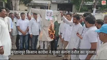हिमाचल के मंडी से भाजपा सांसद और बॉलीवुड अभिनेत्री कंगना रनौत द्वारा किसान आंदोलन के दौरान दिए गए महिलाओं से जुड़े एक विवादएसपद बयान के बाद बुरहानपुर में इसका विरोध हुआ। जिले की किसान कांग्रेस के बैनर तले कंगना का पुतला फूंका गया। इस दौरान विरोध कर रहे कांग्रेसियों ने सांसद कंगना की सदस्यता खत्म करने की मांग की। साथ ही उनके बयान से विश्व भर में भारत के किसानों की छवि खराब होने की बात कहकर देशद्रोह का केस दर्ज करने की मांग की गई। बुरहानपुर कांग्रेस कमेटी के पूर्व प्रदेश महासचिव अजय रघुवंशी, कांग्रेस नेता हेमंत पाटिल और जिले के पदाधिकारियों ने राष्ट्रपति के नाम एसडीएम को एक ज्ञापन भी सौंपा। विरोध कर रहे कांग्रेसियों ने कहा कि भाजपा किसानो के खिलाफ काम कर रही है। पार्टी कहती है कि यह सांसद कंगना का व्यक्तिगत बयान है। अगर, ऐसा है तो कंगना की संसद सदस्यता समाप्त की जाए।