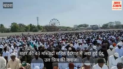 देश भर में शनिवार को ईद उल फ़ित्र का त्यौहार मुस्लिम समाज द्वारा बड़े ही हर्षोल्लाह के साथ मनाया जा रहा है। मध्य प्रदेश के खंडवा जिले में भी इसको लेकर सुबह से ही बड़ी संख्या में मुस्लिम समाज जन ईद की नमाज की तैयारी करते दिखे। इसके बाद सुबह करीब 7:45 बजे से शुरू हुआ ईद की नमाज का सिलसिला शहर की 43 मस्जिदों के साथ ही ईदगाह पर अदा की गई मुख्य नमाज के साथ समाप्त हुआ। इस दौरान जहां मस्जिदों में लाखों की संख्या में नमाजियों ने ईद की नमाज अदा की, तो वहीं ईदगाह पर भी करीब 25000 से अधिक मुस्लिम समाज के युवा बच्चे एवं बुजुर्गों ने ईद की नमाज मौलाना निजामुद्दीन की इमामत और शहर काजी सैयद निसार अली की सरपरस्ती में अदा की। इस दौरान बड़ी संख्या में जिला प्रशासन और पुलिस का अमला भी सुरक्षा व्यवस्था हेतु मौजूद रहा, और यहां पुख्ता सुरक्षा व्यवस्था के इंतजाम किए गए।