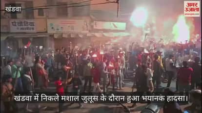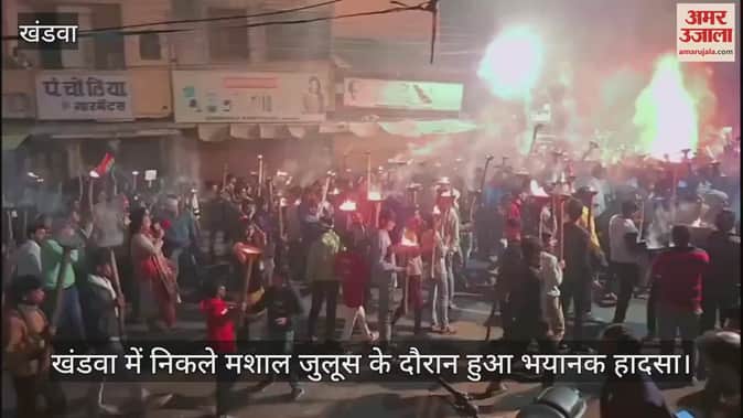 मध्य प्रदेश के खंडवा में गुरुवार देर रात निकाले जा रहे एक मशाल जुलूस के दौरान हादसा हो गया। अचानक कुछ मशालों के भभकने से बड़ी संख्या में लोग झुलस गए। इनमें महिलाएं और बच्चे भी शामिल हैं। घटना के बाद मौके पर अफरा-तफरी का माहौल बन गया और लोगों में भगदड़ मच गई। इस दौरान कई लोग गिरने से भी घायल हो गए। हालांकि, गनीमत रही कि घटना के समय मौके पर मौजूद पुलिस अमले की सतर्कता के चलते बड़ा हादसा टल गया और तुरंत ही हालात पर काबू पाया गया। घटना के बाद तुरंत एसपी मनोज राय, एडिशनल एसपी महेंद्र तारणेकर, राजेश रघुवंशी और जिले का पुलिस अमला मौके पर पहुंचा और स्थिति का जायजा लिया। वहीं, पुलिस अधीक्षक ने अस्पताल पहुंचकर घायलों का बेहतर उपचार सुनिश्चित कराया।