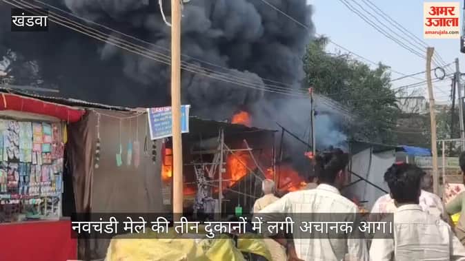 खंडवा शहर के प्रसिद्ध नवचंडी मेले में शुक्रवार सुबह अचानक भीषण आग लग गई, जिससे यहां लगीं तीन दुकानें पूरी तरह से जलकर राख हो गईं। गनीमत रही कि, समय रहते लोगों को इस क्षेत्र से सुरक्षित बाहर निकाल लिया गया था, जिससे बड़ा हादसा टल गया। हालांकि आग लगने की वजह तो अब तक साफ नहीं हो पाई है, लेकिन वहां मौजूद लोगों द्वारा अनुमान लगाया जा रहा है कि पास के कूड़े के ढेर में सुलग रही आग ने मेले की दुकानों को भी अपनी चपेट में ले लिया।