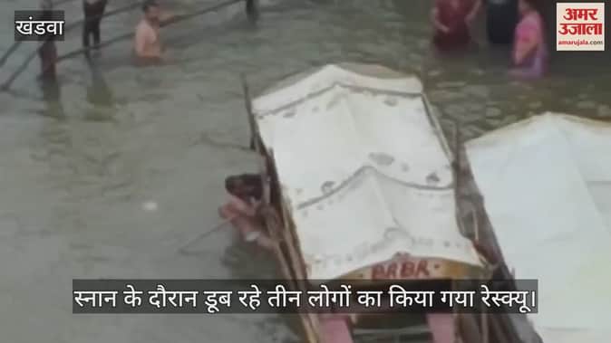 मध्य प्रदेश के खंडवा जिले की धार्मिक तीर्थ नगरी ओमकारेश्वर में रविवार सुबह तीन तीर्थ यात्रियों को डूबने से बचाया गया। घटना पवित्र नगरी के नर्मदा तट के चक्र तीर्थ घाट की है, जहां रविवार की छुट्टी के चलते बड़ी संख्या में श्रद्धालु स्नान करने पहुंचे थे। ओस दौरान अचानक कुछ श्रद्धालु स्नान हेतु तय किए गए स्थान से आगे बढ़कर डुबकी लगाने लगे। हालांकि यहां के घाटों पर तय सीमा के बाद पानी के गहने होने का अंदाजा लगा पाना मुश्किल होता है और अचानक से कुछ स्थानों पर जलस्तर अधिक गहरा हो जाता है। जिसके चलते ये तीनों श्रद्धालु अचानक ही डूबने लगे। गनीमत रही की कुछ हादसा होता उसके पूर्व ही वहां मौजूद नाविकों ने इन्हें डूबते देख लिया और तुरंत ही उनके पास पहुंच कर उन्हें बचाकर सुरक्षित घाट तक पहुंचा दिया। फिलहाल तीनों की पहचान नहीं हो सकी है।