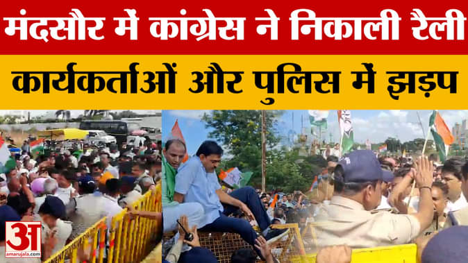Mandsaur: फसल के कम मुआवजे के विरोध में कांग्रेस ने निकाली रैली, कार्यकर्ताओं और पुलिस के बीच झड़प