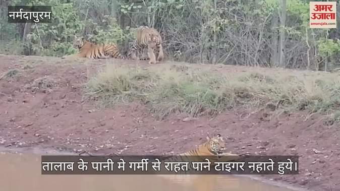 यह दृश्य मढ़ई क्षेत्र के एक तालाब के किनारे नजर आया, जहां एक साथ पांच टाइगर दिखाई दिए। वायरल हो रहे वीडियो में एक टाइगर आराम करता नजर आ रहा है, दो टाइगर पानी पीते दिख रहे हैं, जबकि एक टाइगर तालाब के पानी में बैठा हुआ दिखाई दे रहा है। वहीं, दो अन्य टाइगर तालाब के किनारे खड़े हुए नजर आते हैं। पर्यटकों ने इस अद्भुत नजारे को कैमरे में कैद किया, जिसका वीडियो सोशल मीडिया पर तेजी से वायरल हो रहा है।