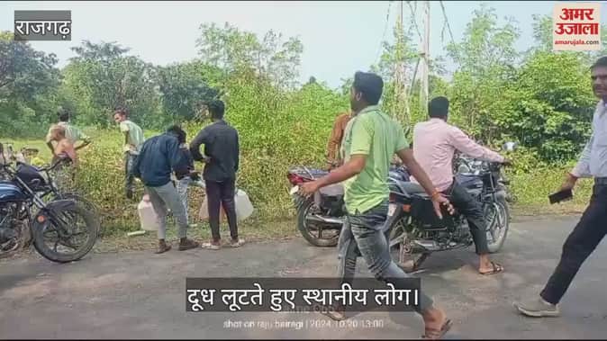A tanker full of milk overturned in Rajgarh, people arrived with utensils to collect it_watch video