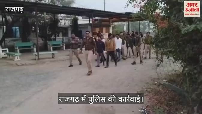 Police taking out procession of accused involved in illegal activities in Rajgarh