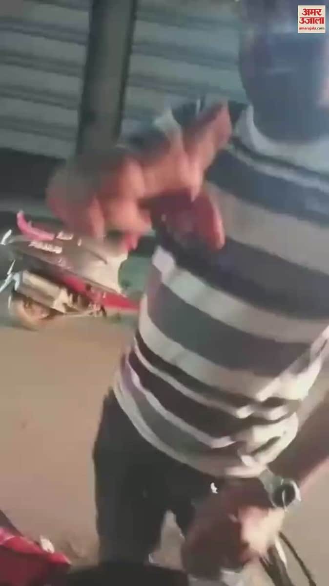 Mother and daughter together beat up a scooty riding scooty in Shajapur. Old video now going viral.