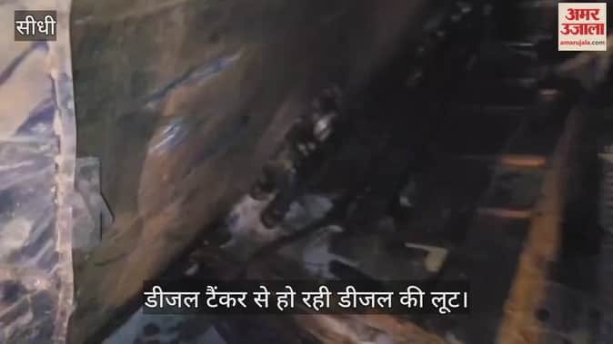 Sidhi News: Diesel tanker overturns at a turn, people rush to the spot with buckets and cans.