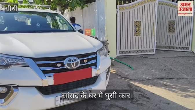 Sidhi News Uncontrolled car wreaks havoc outside Sidhi MP house MP narrowly escapes