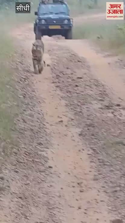 सीधी जिले के संजय टाइगर रिजर्व क्षेत्र में इन दिनों बाघों का जलवा है। पर्यटक दूर-दूर से इस क्षेत्र में बाघों को देखने आते हैं। इसी बीच, रविवार को एक वीडियो सोशल मीडिया पर तेजी से सुर्खियां बटोर रहा है। यह वीडियो दो दिन पहले का बताया जा रहा है, जिसमें पर्यटक अपनी गाड़ी में बैठे हुए थे और बाघ टी-17 अचानक आकर उनका रास्ता रोक लेता है।
