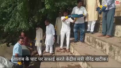 tikamgarh News The Union Minister virendra khatik started cleaning the pond's ghat