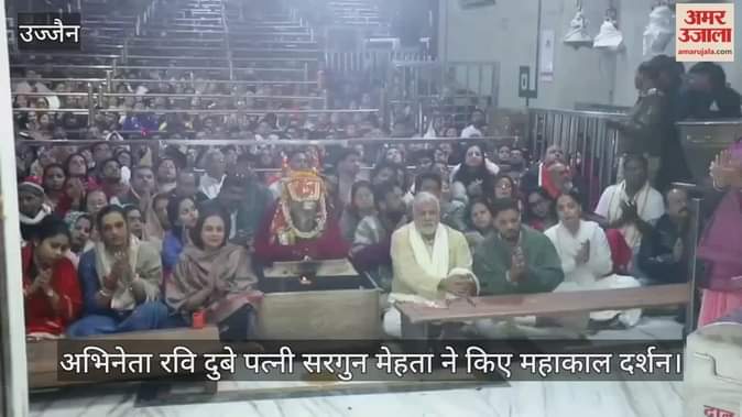 बॉलीवुड और टेलीविजन के लोकप्रिय जोड़ी फिल्म अभिनेता रवि दुबे और फिल्म अभिनेत्री सरगुन मेहता ने आज सुबह श्री महाकालेश्वर भगवान की भस्म आरती में भाग लिया। भस्म आरती के दौरान दोनों कलाकारों ने श्रद्धा और आस्था के साथ भगवान महाकाल का आशीर्वाद लिया। दर्शन के बाद मंदिर समिति की ओर से उप प्रशासक एस. एन. सोनी ने उनका स्वागत एवं सम्मान किया।