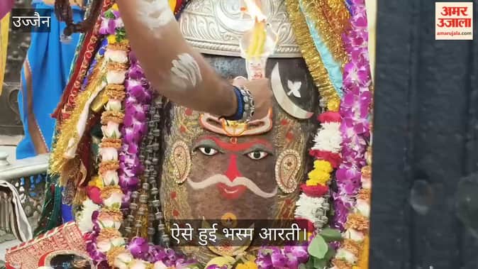 Hindi News ›   Video ›   Madhya Pradesh ›   Ujjain News: Baba Mahakal adorned with moon, belpatra and tripund, huge crowd gathers for Bhasma Aarti