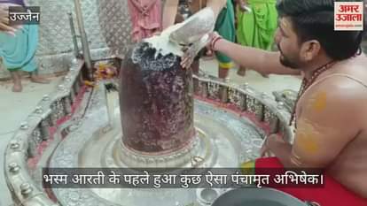 विश्व प्रसिद्ध श्री महाकालेश्वर मंदिर में आज वैशाख कृष्ण पक्ष की दशमी तिथि बुधवार सुबह भस्म आरती के दौरान चार बजे मंदिर के पट खुलते ही पण्डे पुजारियों ने गर्भगृह में स्थापित सभी भगवान की प्रतिमाओं का पूजन कर भगवान महाकाल का जलाभिषेक दूध, दही, घी, शक्कर फलों के रस से बने पंचामृत को अर्पित कर किया। इसके बाद प्रथम घंटाल बजाकर हरि ओम का जल अर्पित किया गया।