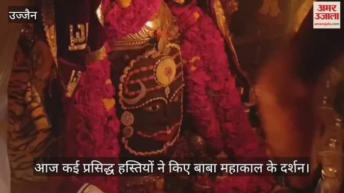 बाबा महाकाल के दरबार में आज भक्ति का अद्भुत संगम देखने को मिला, जहां आज एक साथ महाकाल मंदिर में कई प्रसिद्ध हस्तियों की उपस्थिति से जगमगा उठा। छत्तीसगढ़ के शिक्षा मंत्री गजेंद्र यादव, सोशल मीडिया पर अपनी पहचान बना चुकीं हर्षा रिछारिया और 'हनुमान' के किरदार से घर-घर में लोकप्रिय हुए टीवी अभिनेता निर्भय वाधवा ये सभी अपने परिवार के साथ बाबा महाकाल के दर्शन करने पहुंचे थे।