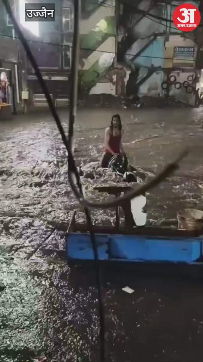 शुक्रवार रात्रि को तेज बारिश ने उज्जैन शहर की व्यवस्था की पोल खोल दी। लगभग दो घंटे तक हुई मूसलधार बारिश के चलते शहर के निचले इलाकों की कई सड़कें और चौराहे जलमग्न हो गए। केडी गेट चौराहा पर एक युवक की बाइक पानी के तेज बहाव में बह गई। युवक ने बाइक बचाने की कोशिश की, लेकिन तेज धार के कारण वह बाइक से काफी पीछे छूट गया। बाद में बाइक कुछ दूरी पर मिली।