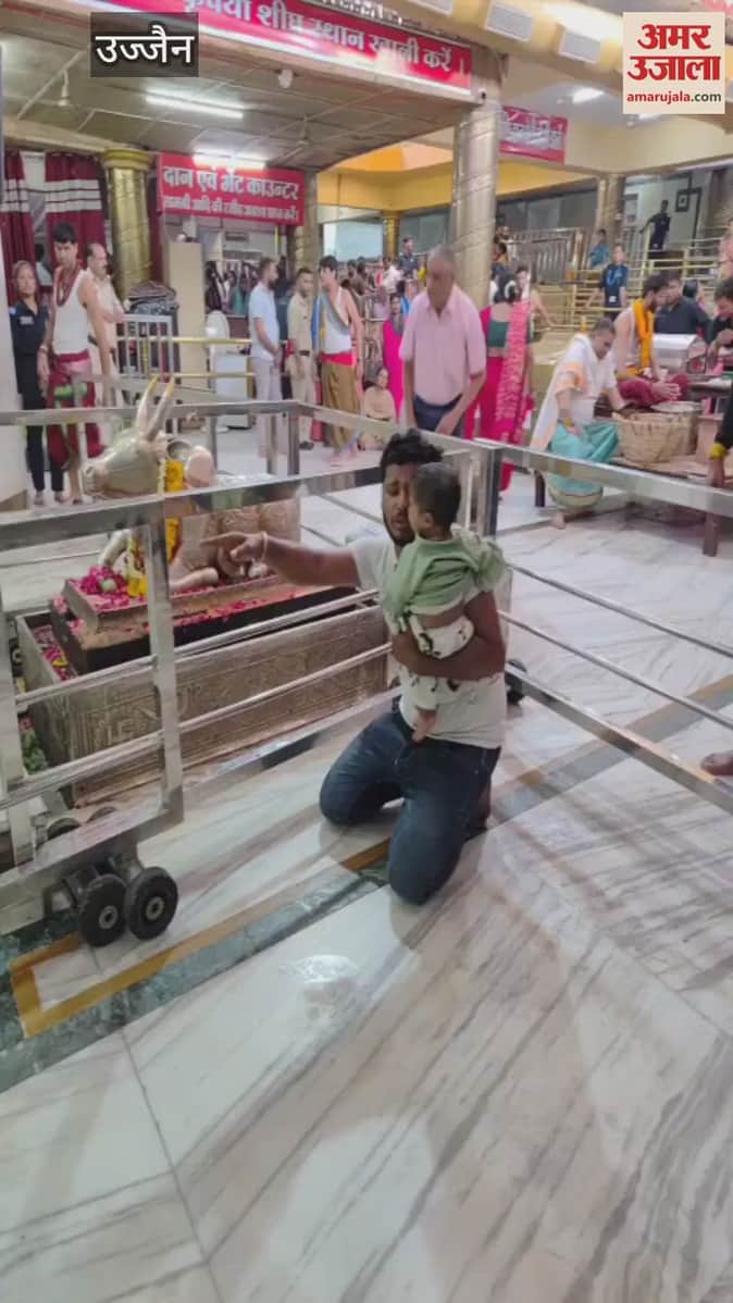 उज्जैन विश्व प्रसिद्ध श्री महाकालेश्वर मंदिर में मंगलवार की शाम एक युवक हाथों में अपनी बेटी को लेकर घुटनों के बल बाबा महाकाल की जय-जयकार करते हुए नंदी हॉल की ओर बढ़ रहा था। यह दृश्य देखकर मंदिर में तैनात सुरक्षा गार्ड ही नहीं, बल्कि श्रद्धालु भी आश्चर्यचकित रह गए। युवक घुटनों के बल नंदी हॉल पहुंचा, जहां उसने बाबा महाकाल के दर्शन किए और फिर अपनी पत्नी और बेटी के साथ बाबा महाकाल का आशीर्वाद लेकर वहां से चला गया।