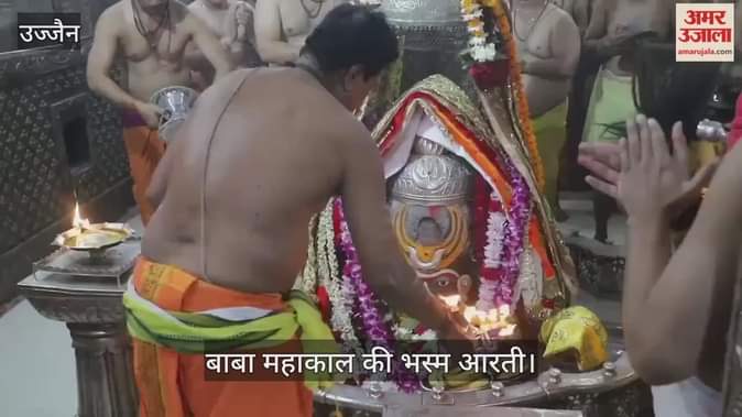 अगहन मास शुक्ल पक्ष की पंचमी तिथि पर आज मंगलवार सुबह भस्म आरती के दौरान बाबा महाकाल के दरबार मे हजारों श्रद्धालुओं का सैलाब उमड़ा। इस दौरान भक्तों ने देर रात से ही लाइन में लगकर अपने ईष्ट देव बाबा महाकाल के दर्शन किए। आज बाबा महाकाल भी भक्तों को दर्शन देने के लिए सुबह 4 बजे जागे, जिनका मुंड माला और त्रिपुंड से शृंगार किया गया। भस्म आरती में भक्तों ने आलौकिक शृंगार के दर्शन किए, जिसके बाद पूरा मंदिर परिसर जय श्री महाकाल की गूंज से भी गुंजायमान हो गया।