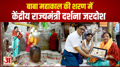 भारत की रेल राज्यमंत्री दर्शना जरदोश आज (सोमवार) सुबह सपरिवार बाबा महाकाल के दर्शन करने पहुंची, जहां उन्होंने भगवान का गर्भगृह से पूजन-अर्चन और अभिषेक किया। दर्शना जरदोश नंदीहॉल में ओम नमः शिवाय का जाप करते हुए बाबा महाकाल की भक्ति में लीन नजर आई। मंदिर में पूजन करने के बाद उन्होंने सिद्धिविनायक गणेश मंदिर पहुंचकर रक्षा सूत्र भी बंधवाया।