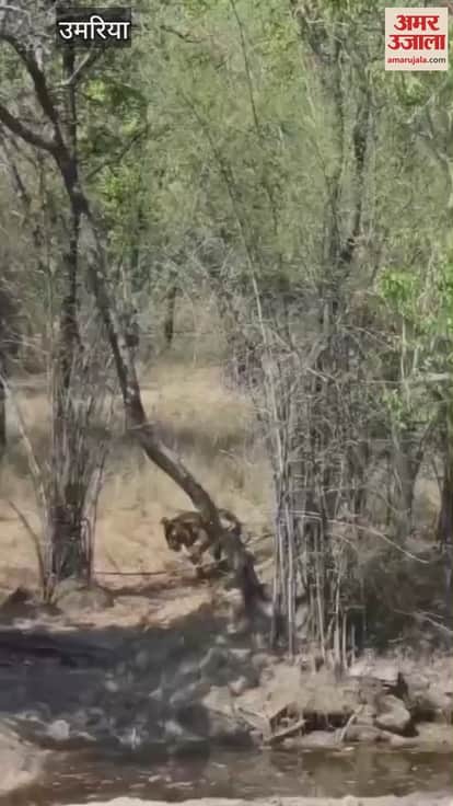 Umaria News: गर्मी से राहत पाने तालाब में उतरा बाघ, बांधवगढ़ के खितौली जोन का वीडियो वायरल
