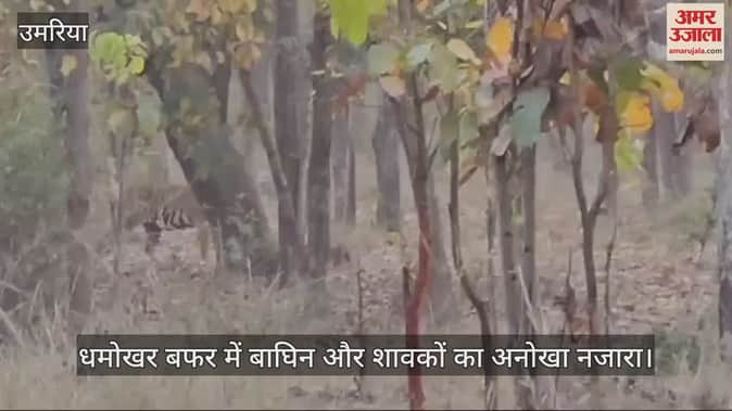 Umaria News: धमोखर बफर में बाघिन और शावकों का अनोखा नजारा, देखें वीडियो
