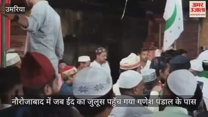 फिर क्या था ईद का पूरा जुलूस पंडाल के पास पहुंचा तो कव्वाल-कव्वाली और नात की धुनों की बजाय गणेश पंडाल में कई प्रसिद्ध भजन गाकर कौमी एकता की अद्भुद मिशाल पेश की। जहां यह वीडियो अब सोशल मीडिया पर तेजी से वायरल हो रहा है। ईद और गणेश चतुर्थी के पूर्व एसपी उमरिया के नेतृत्व में जिले के सभी थाना क्षेत्रों में शांति समिति की बैठक का आयोजन किया गया।नौरोजाबाद में भी टीआई राजेशचन्द्र मिश्रा के द्वारा शांति समिति की बैठक में विस्तृत परिचर्चा करके शांति और सद्भाव के साथ सभी त्योहारों को मनाए जाने की अपील की गई थी, जिसका सीधा असर नगर की कौमी एकता के स्वरूप में नजर आया।