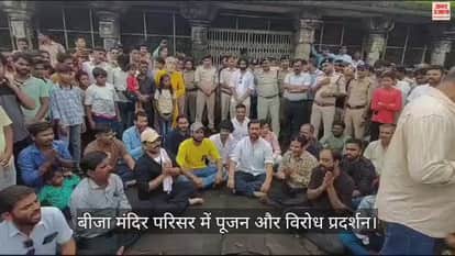 दूसरी तरफ बीजा मंदिर में पूजन करने के लिए पहुंचे स्थानीय विधायक मुकेश टंडन द्वारा ढोल मंझीरों के साथ एक तरफ पूजा अर्चना की जा रही थी, वहीं दूसरी तरफ ताला खोलने की जिद पर अड़े हिंदू युवा लगातार विरोध प्रदर्शन कर रहे थे। लेकिन, स्थानीय विधायक मुकेश टंडन ने पूजा संपन्न की और वे मौके से निकल गए, लेकिन हिंदू युवा उक्त पूजन से संतुष्ट नही हुए। विधायक द्वारा की गई पूजा का बहिष्कार किया गया। क्योंकि प्रतिवर्ष नंदकिशोर शास्त्री द्वारा उक्त स्थान पर विधि विधान के साथ पूजा अर्चना संपन्न की जा रही थी। ऐसे में मौके पर मौजूद हिंदू युवाओं में आपस में कहासुनी भी हुई, लेकिन पुलिस ने हालात बिगड़ने से पहले ही भीड़ को तितर बितर कर दिया। शाम 6 बजे तक एएसआई के नियम के अनुसार उक्त स्थल को पूर्ण रूप से खाली करवा दिया गया।