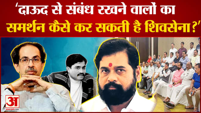 शिवसेना के असंतुष्ट नेता एकनाथ शिंदे ने रविवार को पार्टी नेतृत्व पर निशाना साधते हुए आश्चर्य जताया कि बाल ठाकरे की पार्टी उस दाऊद इब्राहिम के साथ सीधे संबंध रखने वाले लोगों का समर्थन कैसे कर सकती है,