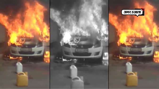 VIDEO: कार में लगी भीषण आग, लोगों में मचा हड़कंप