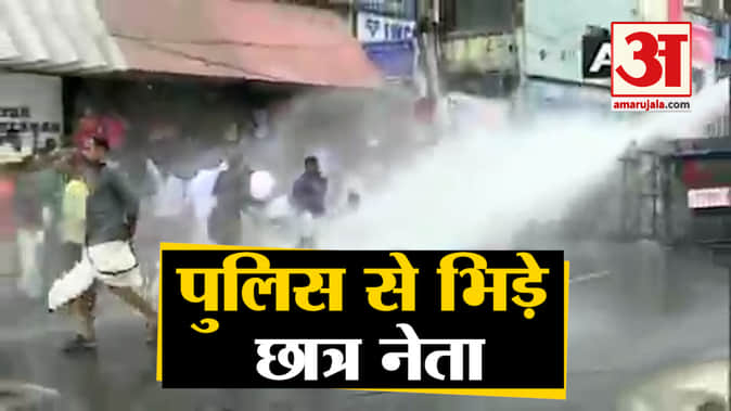 छात्र पर जानलेवा हमले का विरोध कर रहे प्रदर्शनकारियों पर पानी की बौछार, छात्र नेता भिड़ गए पुलिस से